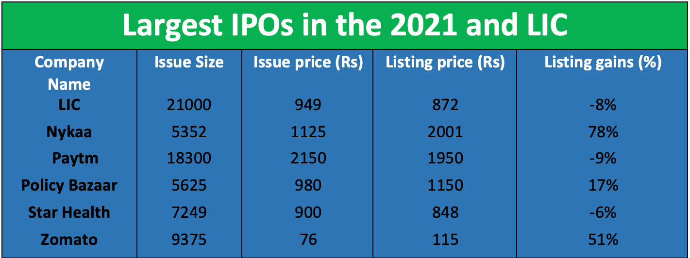 In 2022 came the IPO behemoth, LIC launched its mega Rs 21,000 crore IPO, which is so far the largest for the Indian market and by the time it was closing, the issue was oversubscribed nearly 3 times. The portion reserved for policyholders was subscribed more than 6 times. Once again it’s the individual investor who showed the most faith in the prospects of this IPO. The assumption was that such an old and trusted Indian company has to do well.